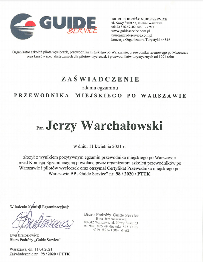 Przez wiele lat pracowałem w korporacjach. Chociaż historia fascynowała mnie od zawsze to dopiero koło pięćdziesiątki postanowiłem skoncentrować się na swojej pasji. Oprowadzam wycieczki po polsku, angielsku i rosyjsku.